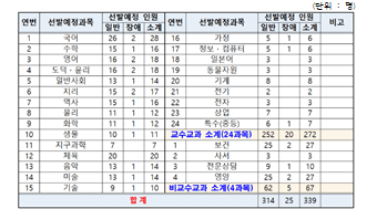 충북 지역 선발 인원 및 과목입니다. 선발예정 인원 총 339명입니다. 비교수 교과의 경우에는 초등, 유치원 합쳐져 있을 수 있으니 확인 바랍니다.