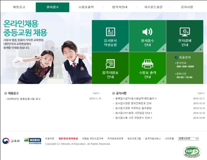 2023 임용고시 일정 및 응시 방법도 기존의 방법과 다르지 않을 것으로 봅니다. 중등 임용고시의 경우 각 시도교육청 나이스 교직원 온라인 채용 시스템을 통하여 접수합니다. '중등교원 채용' 탭에서 응시원서를 접수할 수 있습니다. 온라인 접수기이기 때문에 기간 내에는 24시간 접수하며 보통 월요일에서 금요일 까지 주 5일, 5일간 접수를 하는 편입니다. 접수 마감일의 경우는 자정이 아닌 오후 6시 마감인 경우가 많기 때문에 꼭 확인을하셔야 합니다.