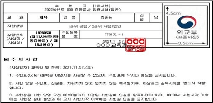 원서 접수 현황에 따라 장소의 크기가 결정되기 때문에 시험 장소 공고는 원서 접수 마감 후, 시험 열흘 전쯤에 공고되는 것이 일반적입니다. 시험 장소는 시도교육청 홈페이지, 행정정보, 시험 안내란을 참고하시면 됩니다.